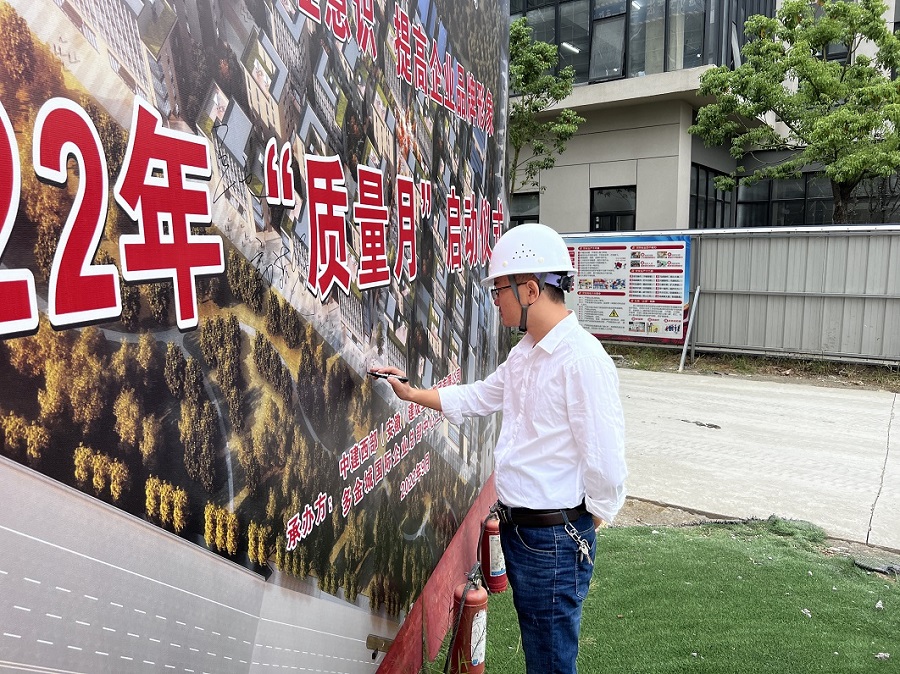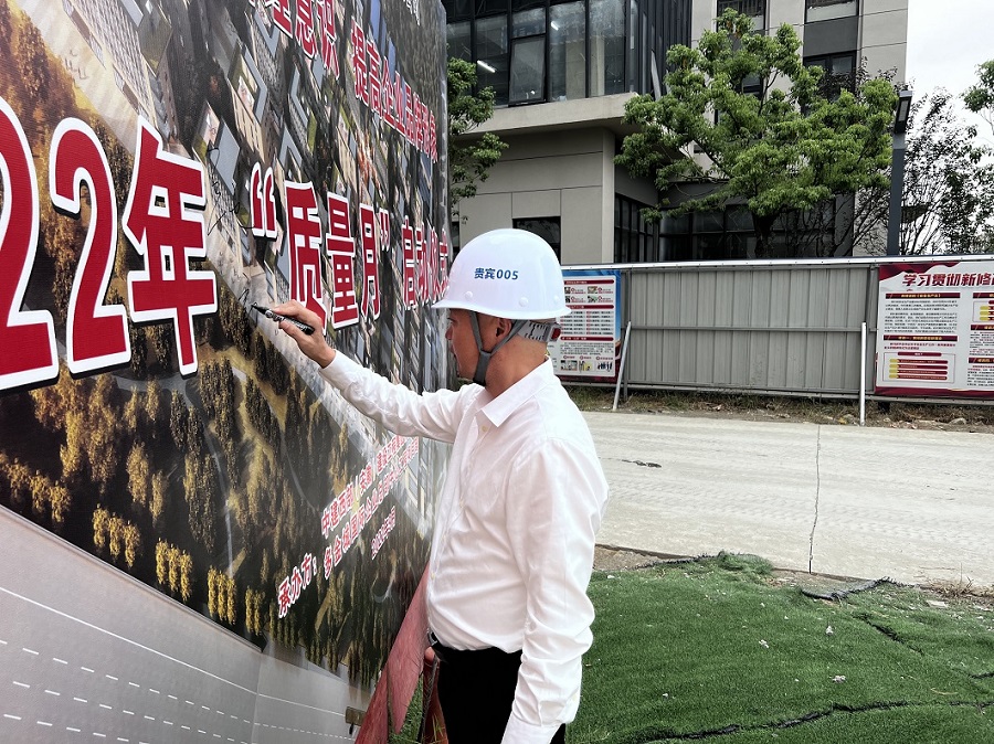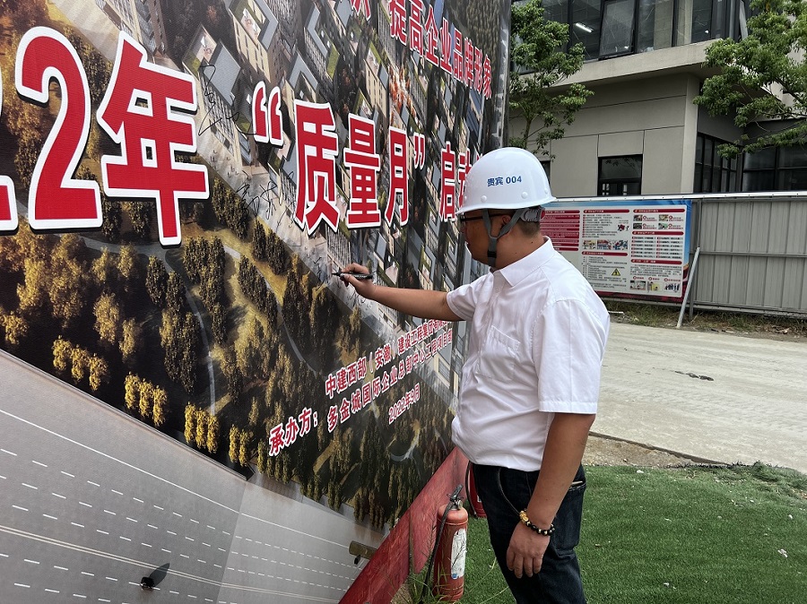 儀式上,中建西部建設(shè)集團(tuán)領(lǐng)導(dǎo)闡述了開(kāi)展“質(zhì)量月”活動(dòng)的重要意義,宣讀了項(xiàng)目部開(kāi)展2022年“質(zhì)量月”活動(dòng)的實(shí)施方案,并提出了四點(diǎn)工作要求: 一是周密部署,精心策劃。各單位要進(jìn)一步樹(shù)立“至精”發(fā)展理念,增強(qiáng)質(zhì)量責(zé)任意識(shí),圍繞質(zhì)量月活動(dòng)實(shí)施計(jì)劃,因地制宜的開(kāi)展有成色、有亮點(diǎn)、接地氣的活動(dòng)。二是不走過(guò)場(chǎng),重心下移。各單位要按照活動(dòng)的總體要求,充分發(fā)揮活動(dòng)主力軍作用,廣泛動(dòng)員班組、工人參與,將各項(xiàng)活動(dòng)落到實(shí)處。三是正視問(wèn)題,立行立改。各單位要以問(wèn)題為導(dǎo)向,認(rèn)真檢視質(zhì)量管理工作中存在的薄弱環(huán)節(jié)和突出問(wèn)題,編制問(wèn)題清單,剖析根源,制定措施,限期整改。四是不斷創(chuàng)新,務(wù)求實(shí)效。各單位要全方位、多角度開(kāi)展“質(zhì)量月”宣傳和策劃活動(dòng),力爭(zhēng)把“ 質(zhì)量月”活動(dòng)辦成推動(dòng)質(zhì)量工作、展示質(zhì)量成果的平臺(tái),提高“質(zhì)量月”活動(dòng)實(shí)效。