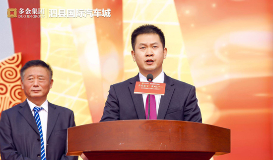 安徽汽車經銷商商會黨支部書記李新廣先生作為特邀嘉賓上臺致辭,表示汽車行業是一個持續蓬勃發展的產業,“多金·泗縣國際汽車城”以前瞻的戰略眼光,順應行業發展趨勢打造“一站式”汽車產業新平臺,希望以此能夠帶動區域汽車行業發展。